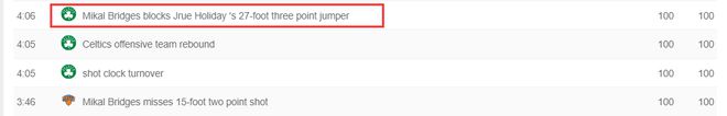 米卡尔-布里奇斯在加时完成了绝杀抢断,他在终场前1秒抢断杰伦布朗成功,他直接将球抛向前场锁定胜局,他直接瓦解了布朗的绝平机会。季后赛的确是充满奇迹的地方。