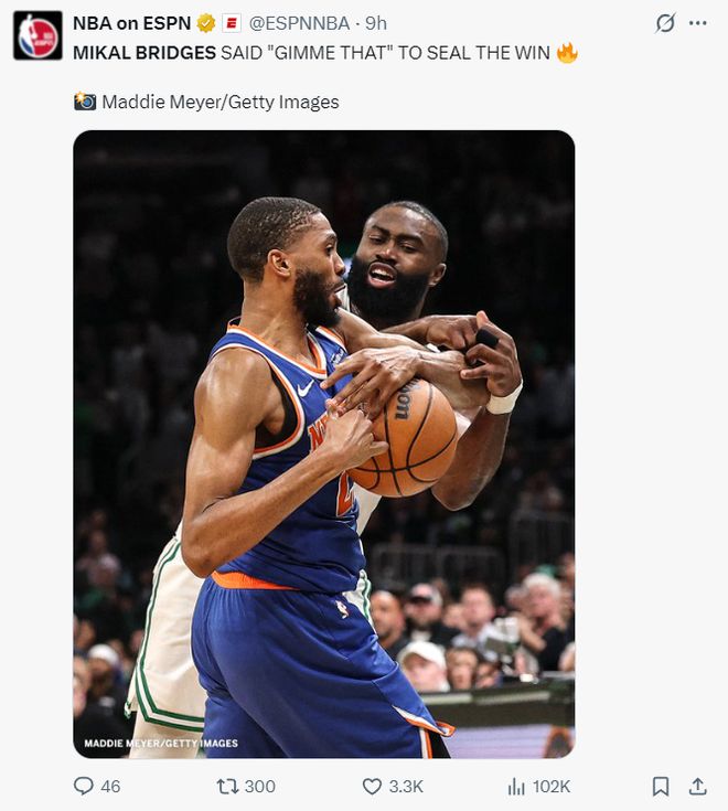 尼克斯媒体写道:“我们花大钱交易得到布里奇斯就是为了这一刻,就是为了击败波士顿凯尔特人,这一切都是值得的。”